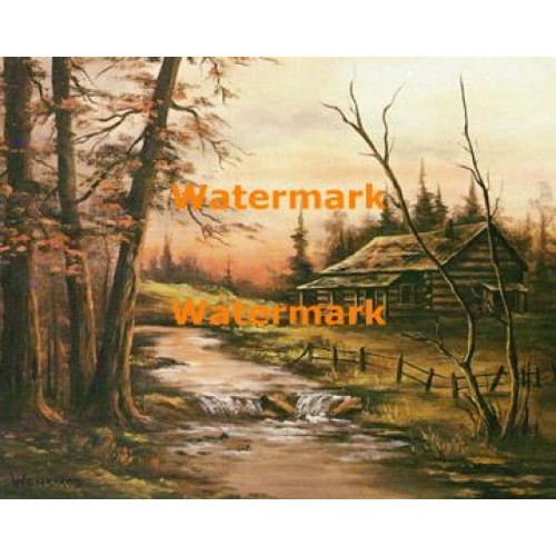 Log cabin by river by Wonsmos