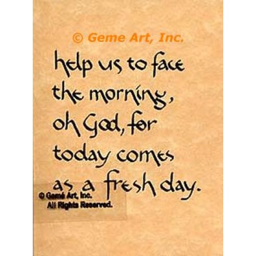 On Print: "help us to face the morning, oh God, for today comes as a fresh day."
