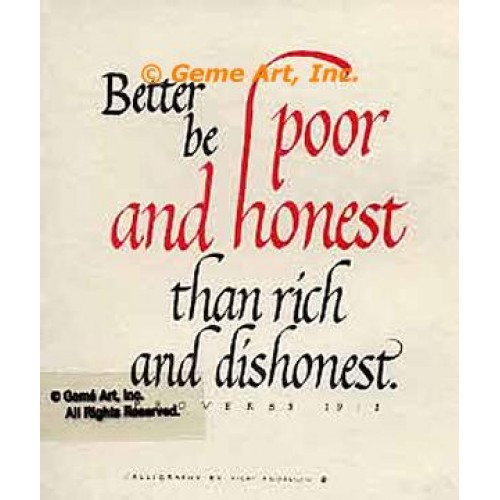 On Print: "Better be poor and honest than rich and dishonest. PROVERBS 19:1"