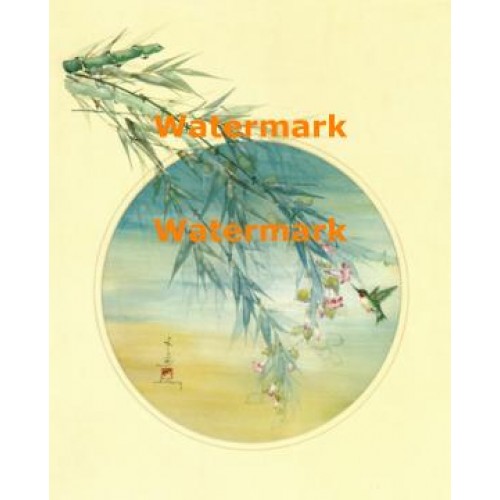 circles, paper tole, verticals, vertical prints, 8x10, flowers, florals, Oriental, John Cheng, birds, blues, xbch258, 4x5