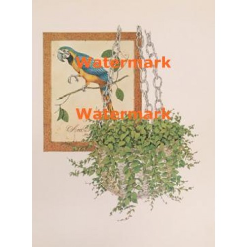 paper tole, verticals, vertical prints, foliage, greens, plants, greenhouses, green houses, Ben Black, 9x12, birds, parrots